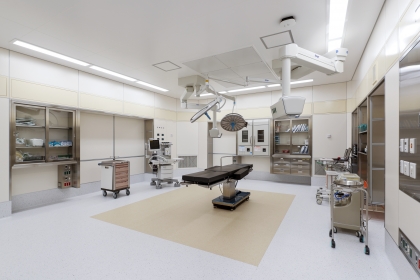 出産時の緊急対応では、分娩室に隣接して手術室で24時間常に手術ができる環境を整えています。