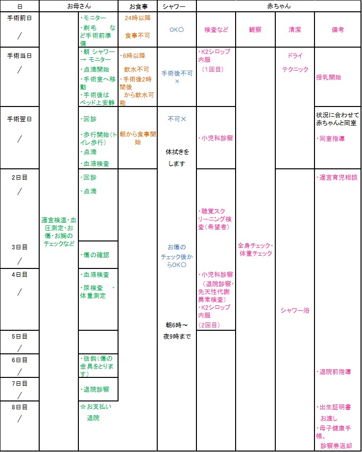 帝王切開手術スケジュール