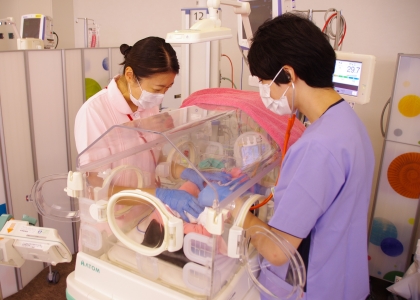 NICUでは主に、早産児や、分娩後にさまざまな症状を呈した赤ちゃんの治療を行っています。当院のみならず他院で生まれた赤ちゃんも受け入れており、地域の医療施設からの多くの搬送依頼に応じています。