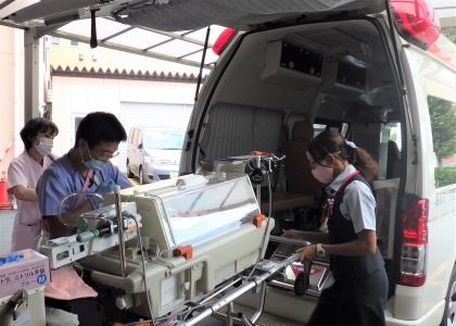 そのため当院では、自前の緊急車両や搬送用保育器で新生児のお迎え搬送を独力で行っています。当院の小児科医が同乗して依頼元の医療施設へ急行し、処置をした上で搬送することで、当院NICUへ到着した後に速やかに治療につなげることができます。当院では行えない特殊な治療が必要な場合には、現場から高度医療施設へ搬送することもあります。